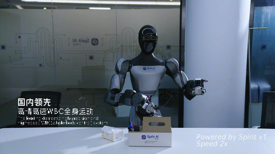 Spirit v1通过动态场景和切确动做节制,离不开具身智能「大脑」VLA(视觉-言语-动做)模子的。它能够丝滑完成拾掇、欢迎、导览等使命,